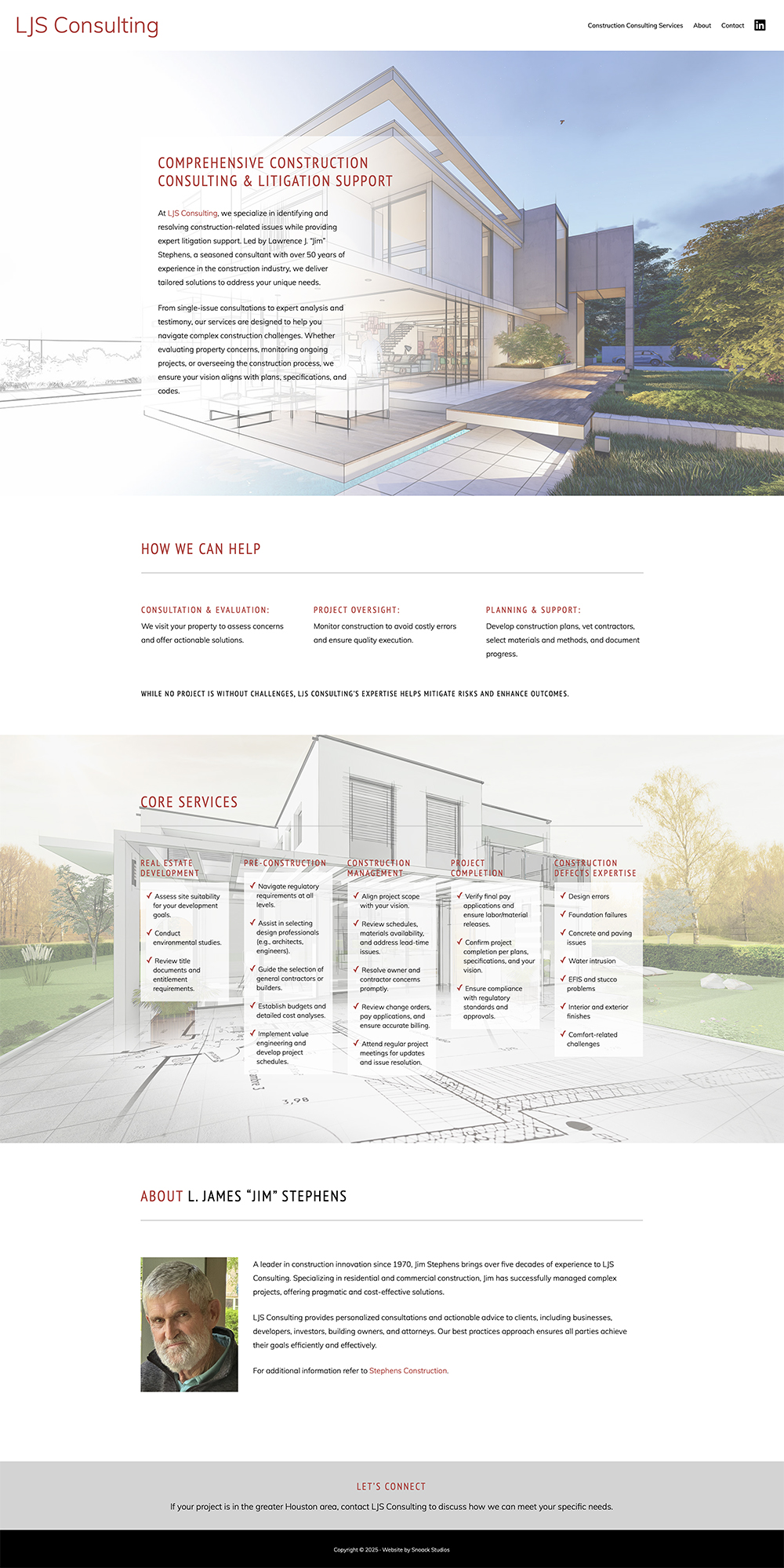 We launched a sleek new website for LJS Consulting earlier this year, a Houston-based firm specializing in construction consulting and litigation support. Their goal was a clean, straightforward, and user-friendly site that highlights their services and provides helpful information for potential clients. The final result is a one-page website that features a minimalist layout with plenty of white space, bright imagery for visual appeal, classic typography, and their signature red color. Take a look at ljsconsultingtx.com and let us know what you think!